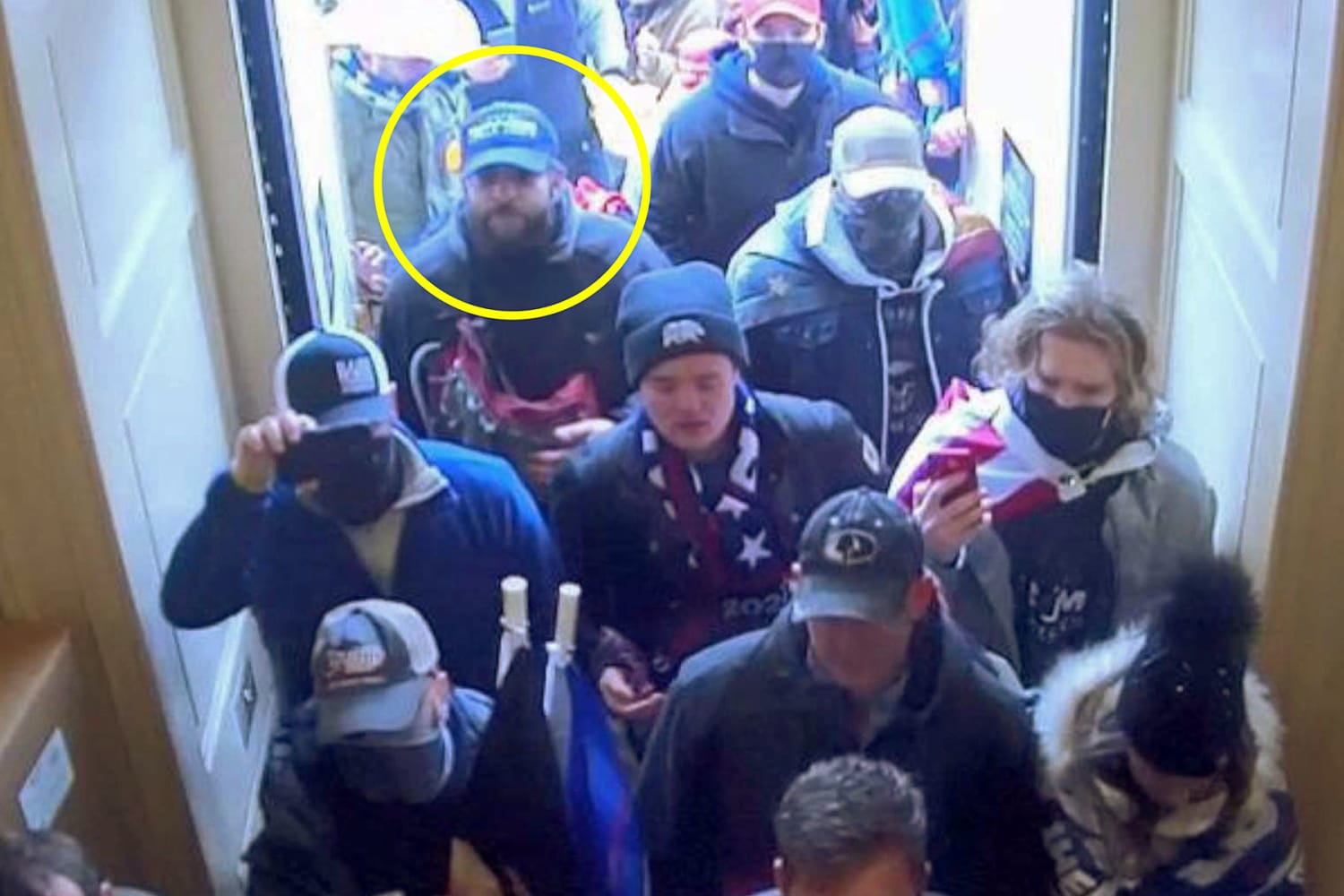 Taylor Taranto, circled in yellow, enters the Capitol through the Upper West Terrace door on Jan. 6, 2021.laurencepierrelouis / Justice Dept. via AP file