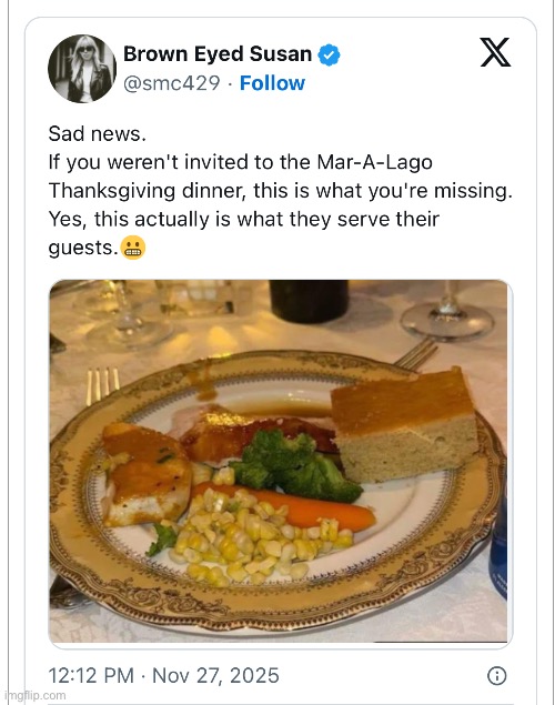 night at Mar a Lago when the Government shutdown was making people go hungry. They teach. They teach sadism.