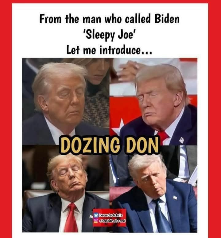 (173,407 posts)5. Sleepy Don wakes up at 12pm every day and is always napping.💤