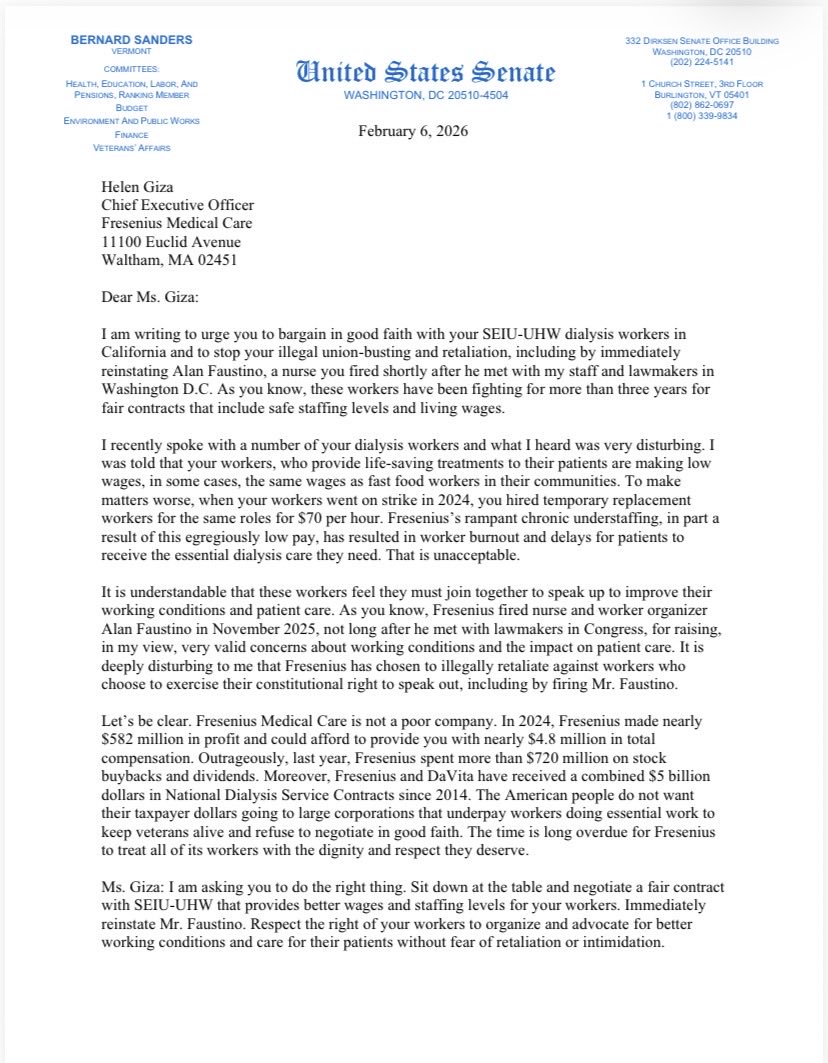 Dialysis provider Fresenius paid its CEO $4.8 million in 2024—then fired nurse Alan Faustino for speaking out about working conditions. @Fresenius, @DaVita, @USRenalCare, @SatelliteHealth: Union-busting has no place in health care. Bargain in good faith. Reinstate him.