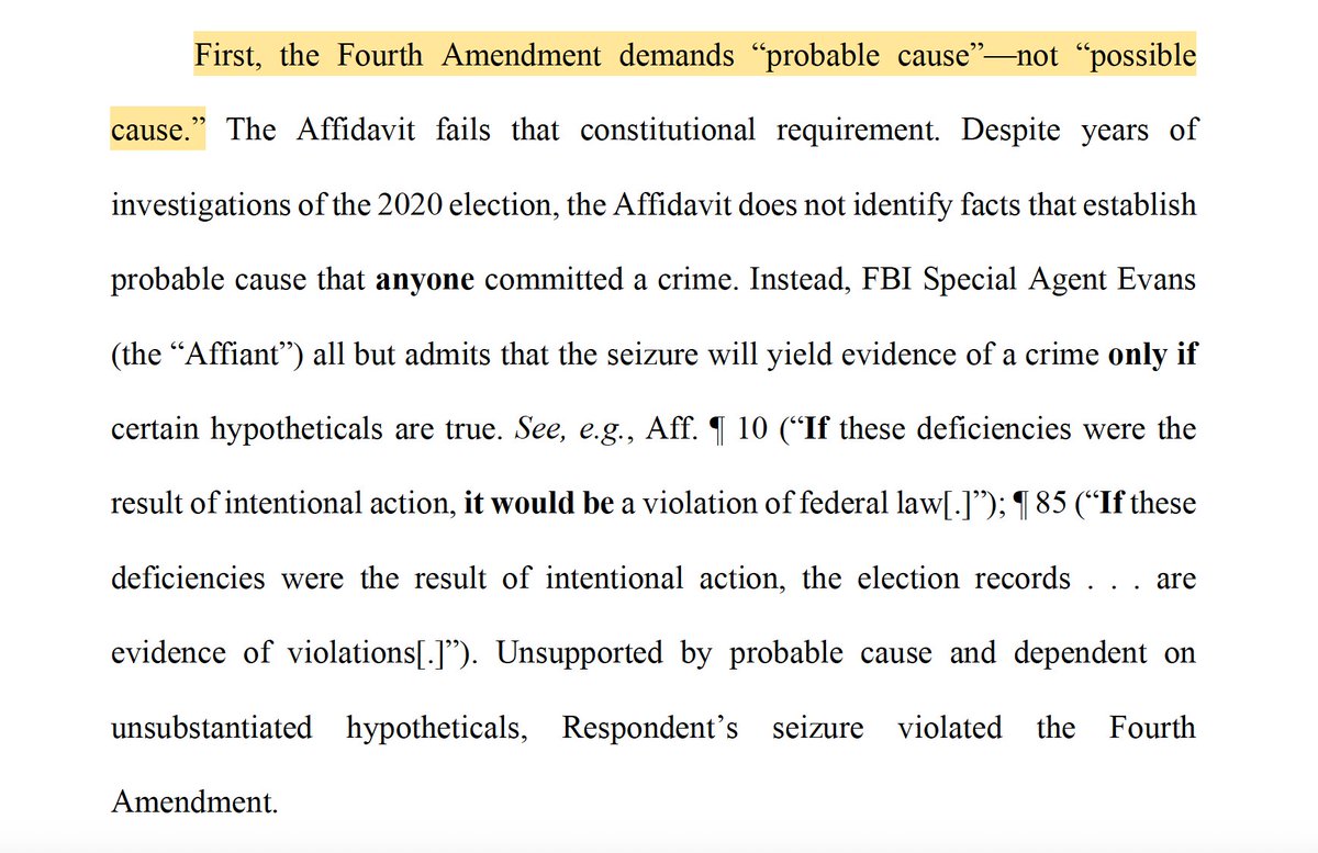 Roger Parloff @rparloff 3hFulton Co's amended petition for return of seized voting records: "First, the Fourth Amendment requires 'probable cause,' not 'possible cause.'"