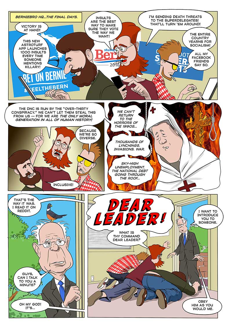 He's headed for irrelevance and his supporters are going to whittle down to a bunch of bullying thugs on the streets of Philly and a lot of pitiful bloggers on a Sanders' island at Reddit.